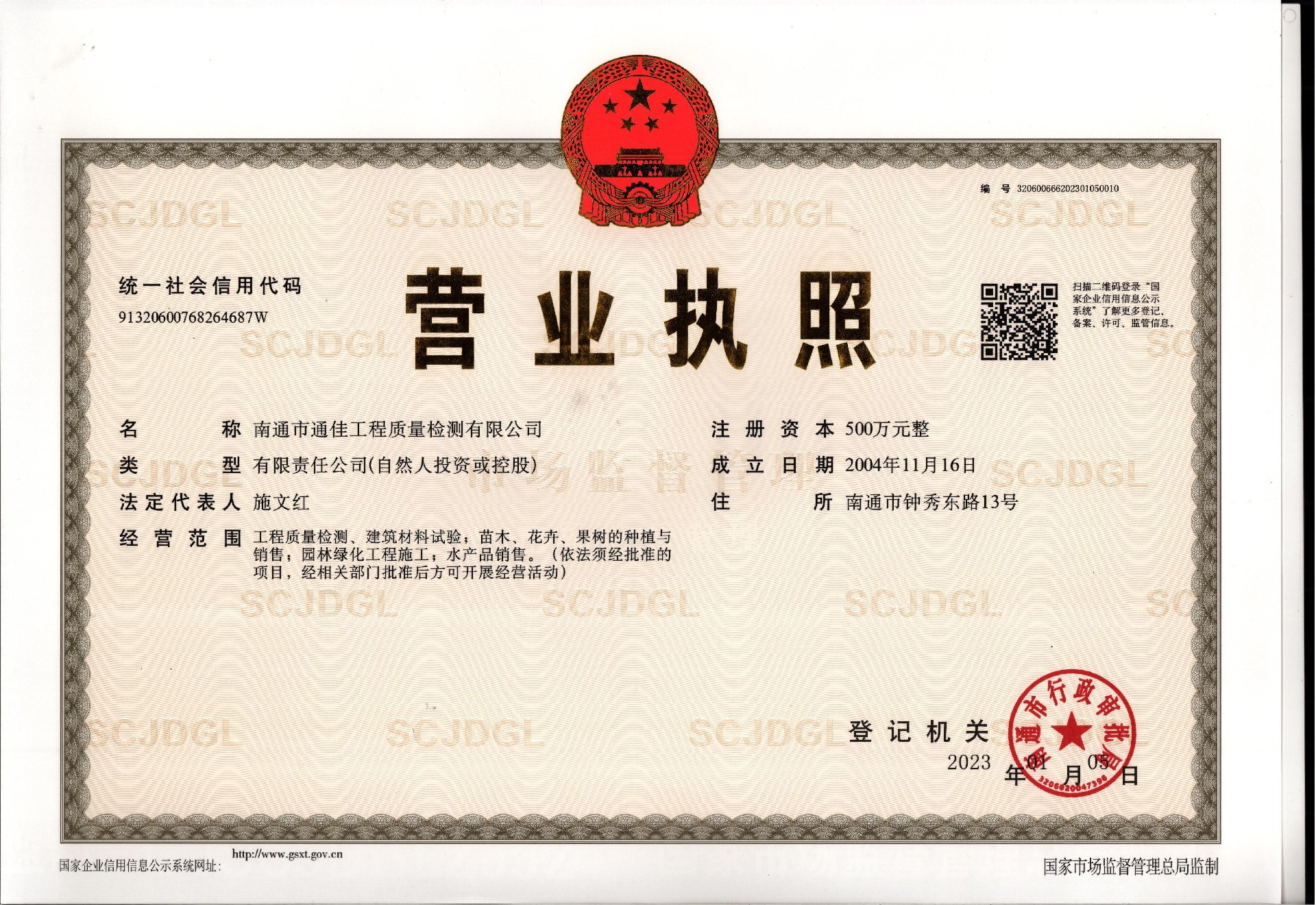 <dd> 　　 南通市通佳工程质量检测有限公司是于2004年11月16日依法注册成立的第三方独立法人检验检测机构，其前身为成立于1958年的南通市市政工程处试验室。<br>
