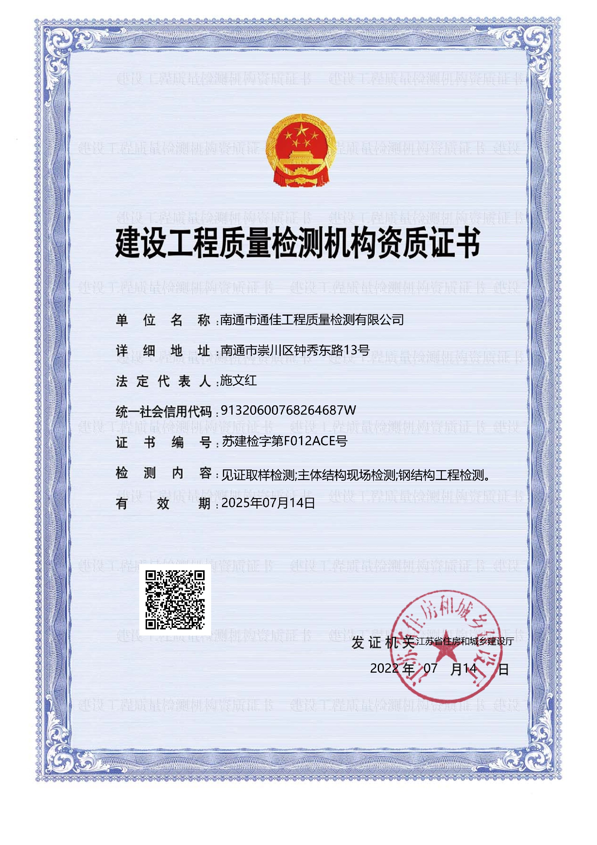 <meta name="Keywords" content="南通市通佳工程质量检测有限公司,通佳，通佳工程，工程质量，质量检测，备案检测，墙体检测，取样检测，市政工程，建筑材料" >